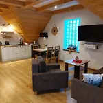 Apartament Na Groniku villa provides a mini-kitchen with an electric kettle, a fridge, and a toaster for guests' use. The accommodation is also just 300 metres from Gronkow Gorny bus station.
